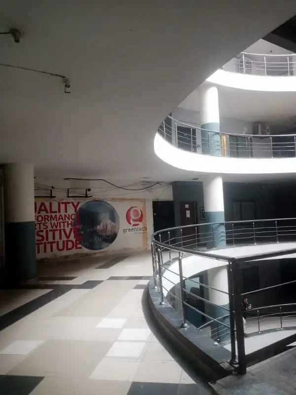 425 sq. ft. office for rent at Rs 35,000 per month in a well-maintained building. The property features 8 floors, 2 basements, 3 lifts, and separate LESCO meters, with maintenance charges of PKR 12/sq. ft. for shops and PKR 20/sq. ft. for offices.