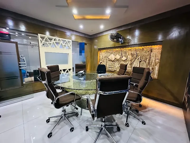 A 2,000 sq. ft. furnished office is available for rent in Johar Town for Rs. 270,000 per month. It features a large executive room, meeting room, admin room, reception, employee area, two washrooms, store, and kitchen—ideal for corporate or professional use.