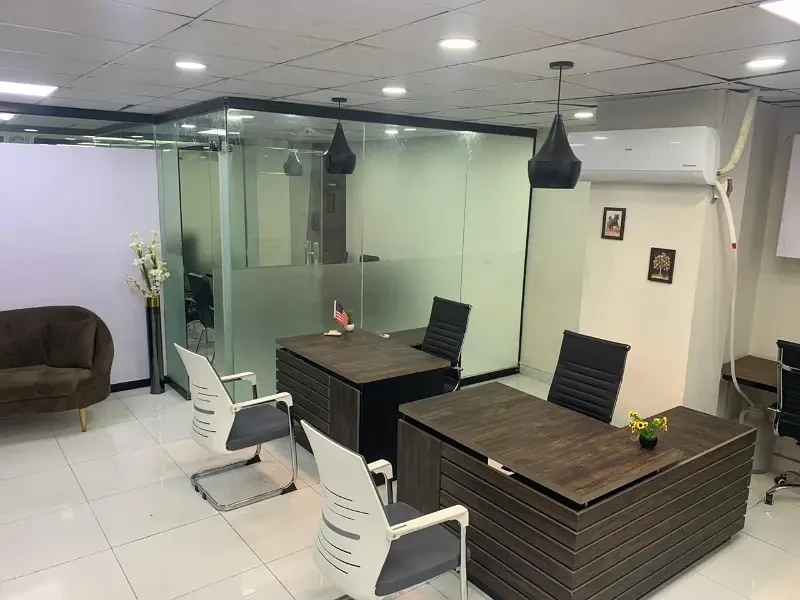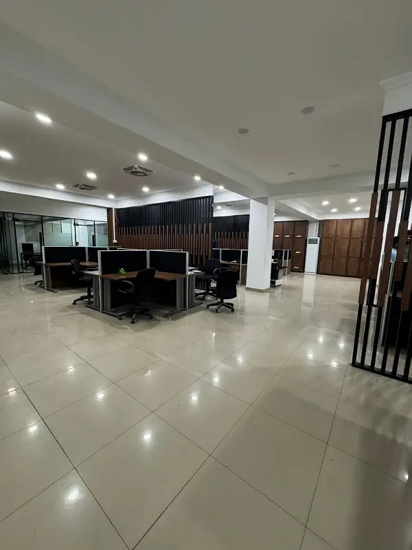 Features include reception, furnished workstations, air conditioning, kitchen, high-speed internet, backup generator, and ample free parking, ideal for corporate offices or startups seeking a ready-to-use workspace.