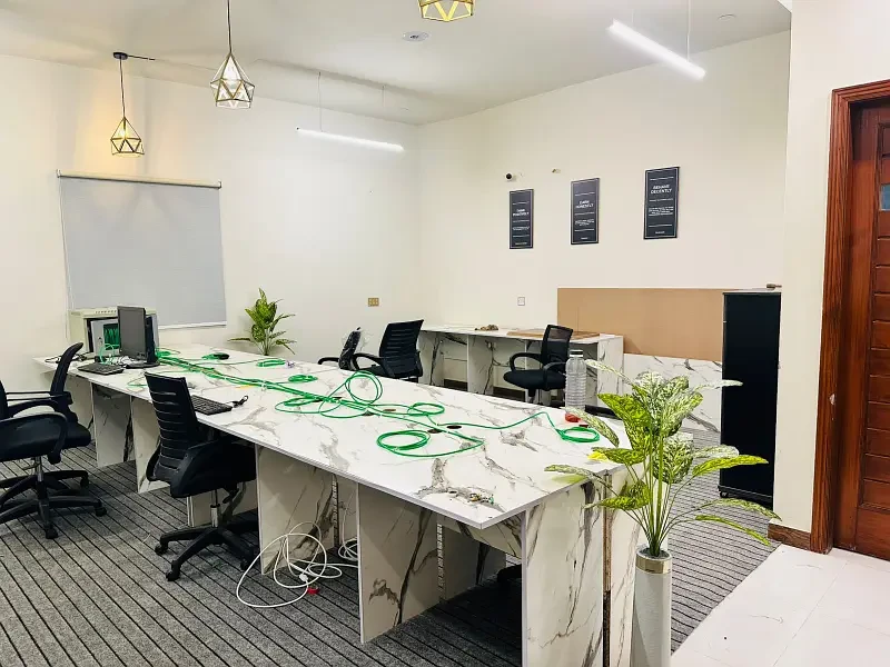 A 1,150 sq. ft. office is available in a prime Johar Town location, suitable for 25–35 staff. Two floors of the same size are available, offered furnished or unfurnished, with total rent of Rs 250,000 unfurnished or approx. Rs 450,000 furnished.