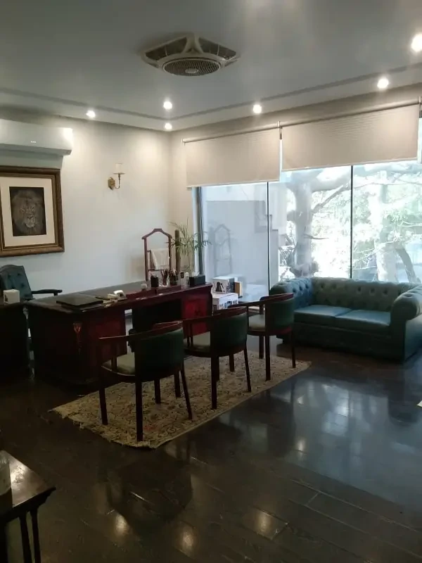 The office features seven rooms with attached bathrooms, multiple meeting rooms, a kitchen, and elegant tile flooring throughout, providing a comfortable and professional environment for staff and clients. Its prime location in Model Town ensures easy access and visibility. This property is ready for immediate occupancy and is well-suited for businesses seeking a large, well-equipped office space.
