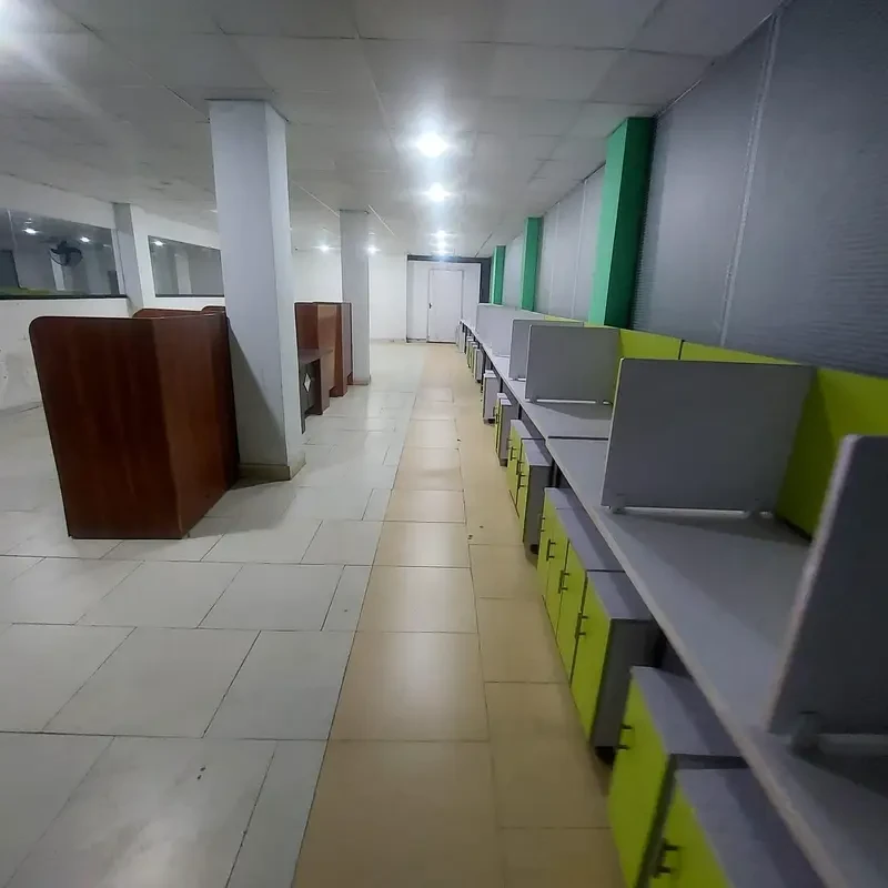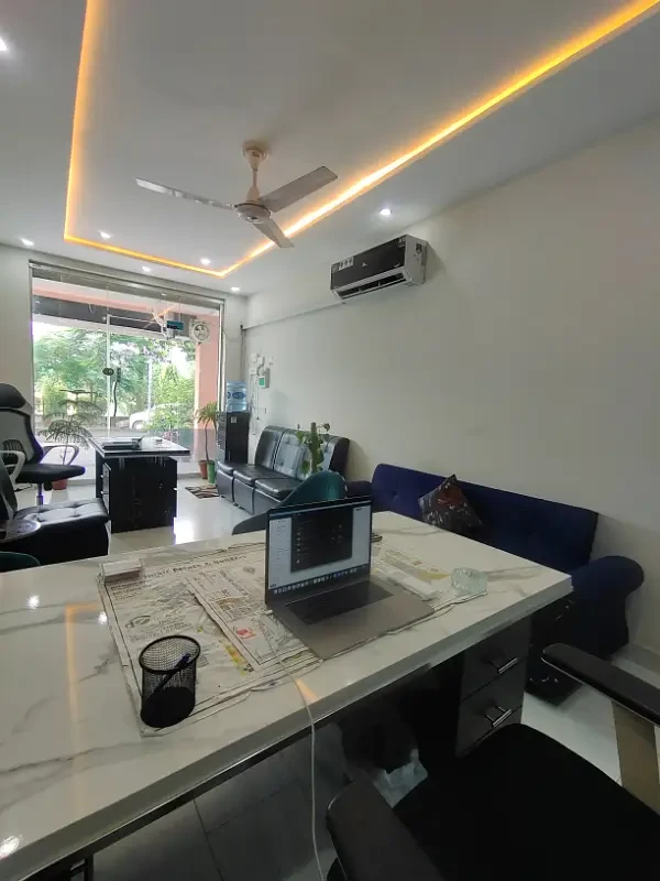 A large semi-furnished office hall is available for rent on the 2nd floor at Main Frozen Pur Road, Icchra, near Shama Stop. The office has two separate glass door entrances, a dedicated exit, and ample space for medium to large teams.