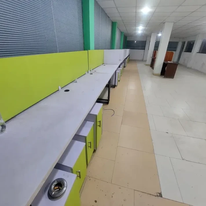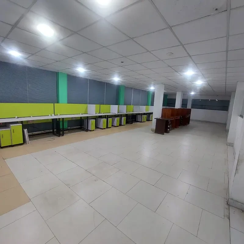 The hall comes with 25 installed workstations (capacity 50–60), complete electric wiring, networking, and lighting, and a separate electric meter. Parking space and fresh paint work are also available.