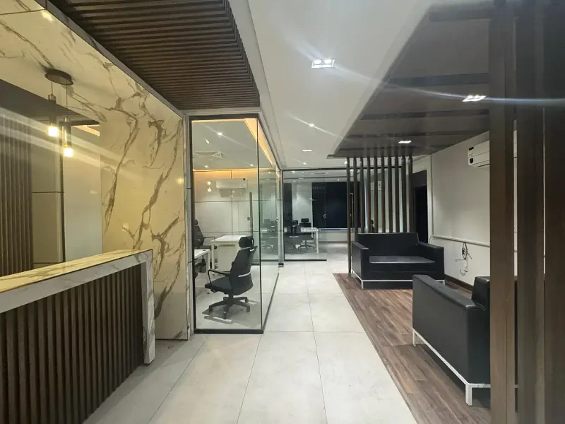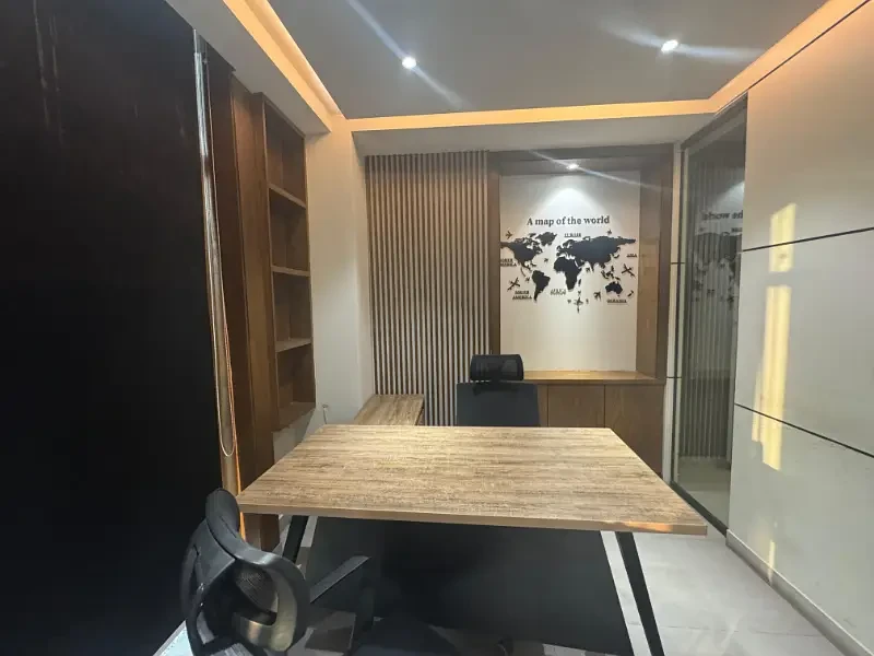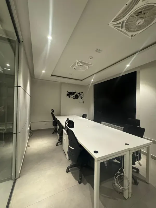Corporate furnished office available for rent in Phase 7, Bahria Town. Ideal for software houses and call centres, featuring 2 executive rooms, manager room, meeting room, and accounts room.