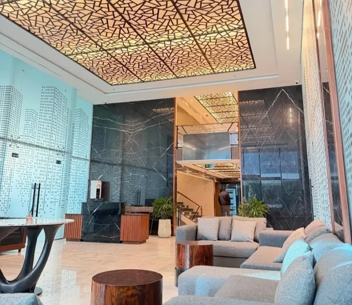 The space is designed with a modern and sleek architectural style, featuring high-quality finishes, two contemporary washrooms, and elegant kitchen counters for added convenience. Equipped with state-of-the-art facilities, including high-speed elevators and advanced security systems, the building ensures a professional and secure working environment.
