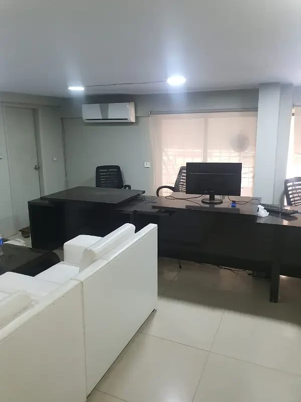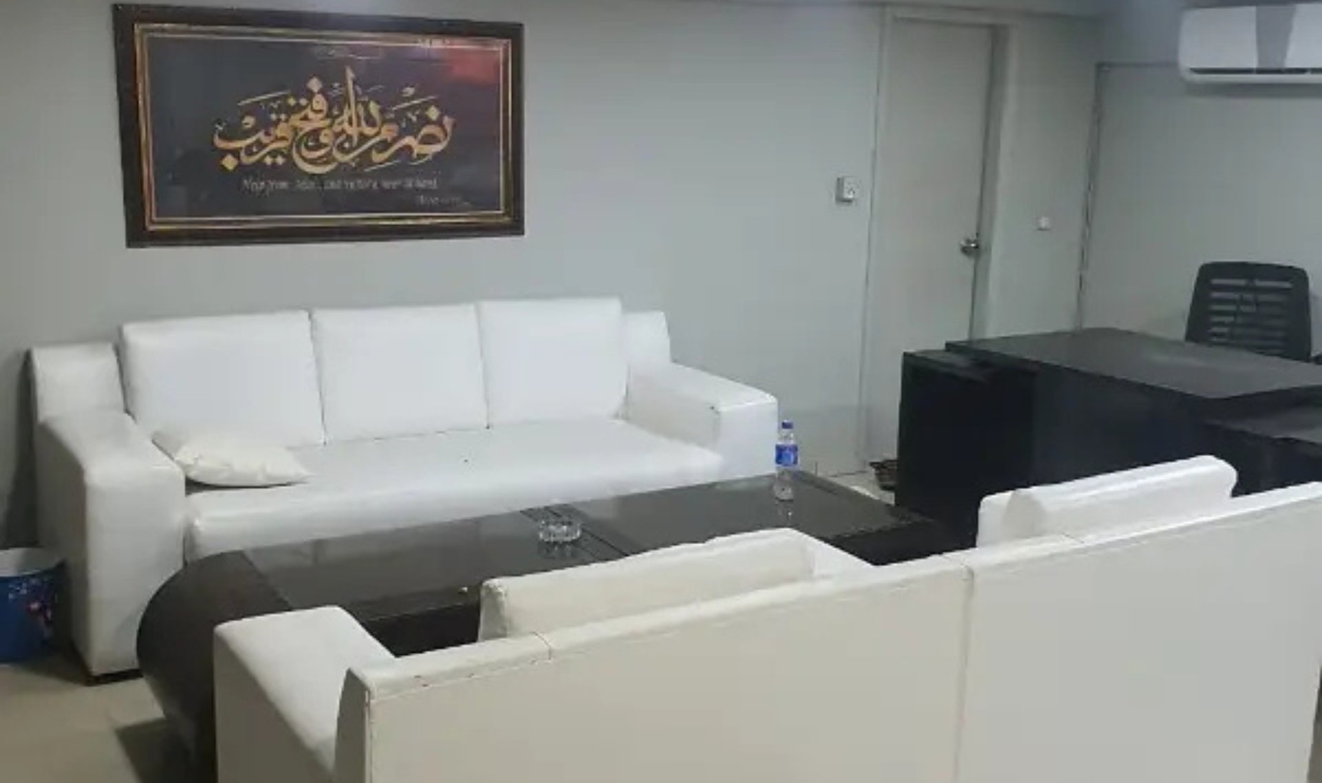 A VIP lavishly furnished office is available for rent near 26th Street in DHA Phase 5, offering 1,500 square feet of well-designed workspace on the mezzanine floor with a separate front entrance. The office features three executive chambers, a dedicated cubicle workstation area, and a prime 3-side corner location that ensures excellent visibility and natural light.