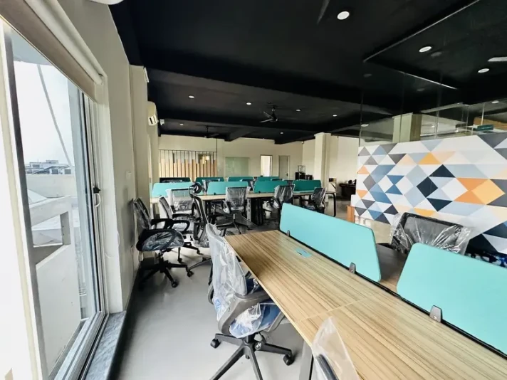 The premises offer a decent parking area with convenient service road access, making it easily approachable for staff and clients. The peaceful surroundings create a productive working environment, perfect for businesses aiming to establish a professional presence in a well-connected area.
