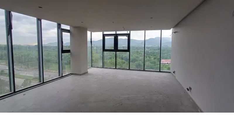 A brand-new premium office space is available in New Blue Area, featuring modern facilities and panoramic Margalla Hills views. The 750 sq. ft. unit includes an attached private washroom, open-layout kitchen, and access to three modern elevators, along with open and owned parking.