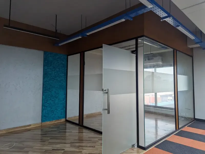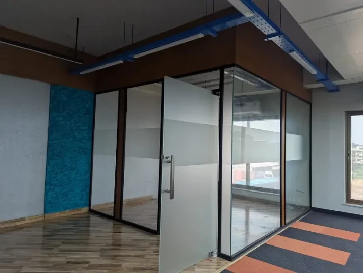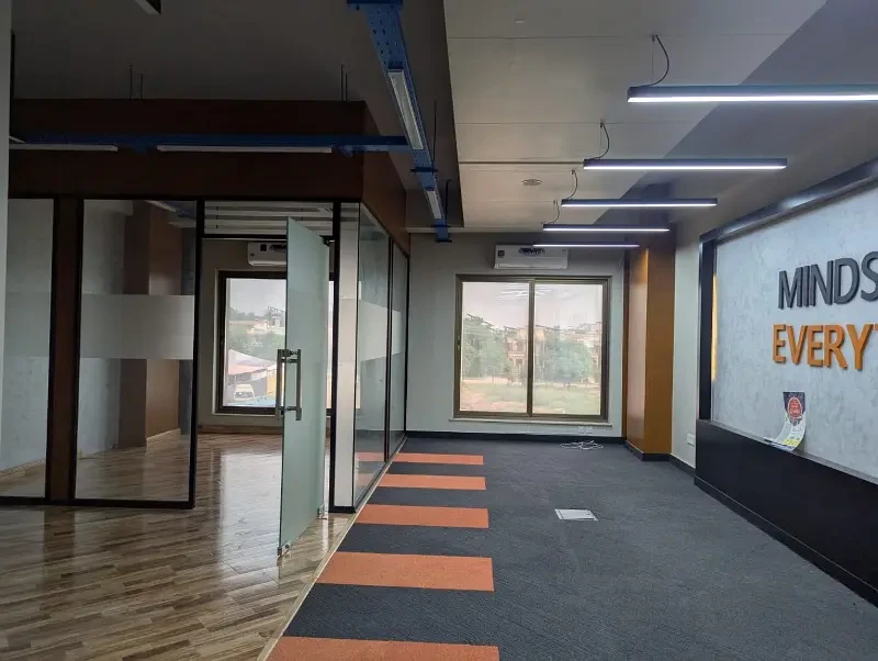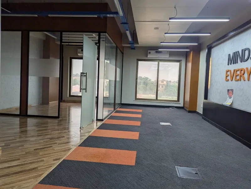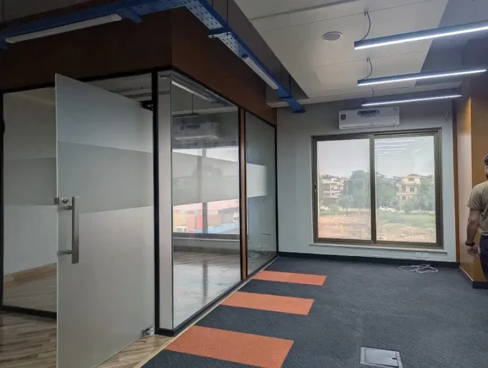 The office features a spacious hall, bathrooms, tiled flooring, and a corporate interior. The current tenant is offering to sell the existing partitions and interior setup, providing an excellent opportunity for immediate occupancy with minimal setup costs.
