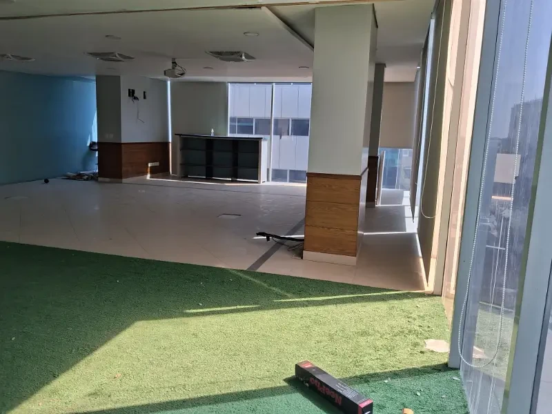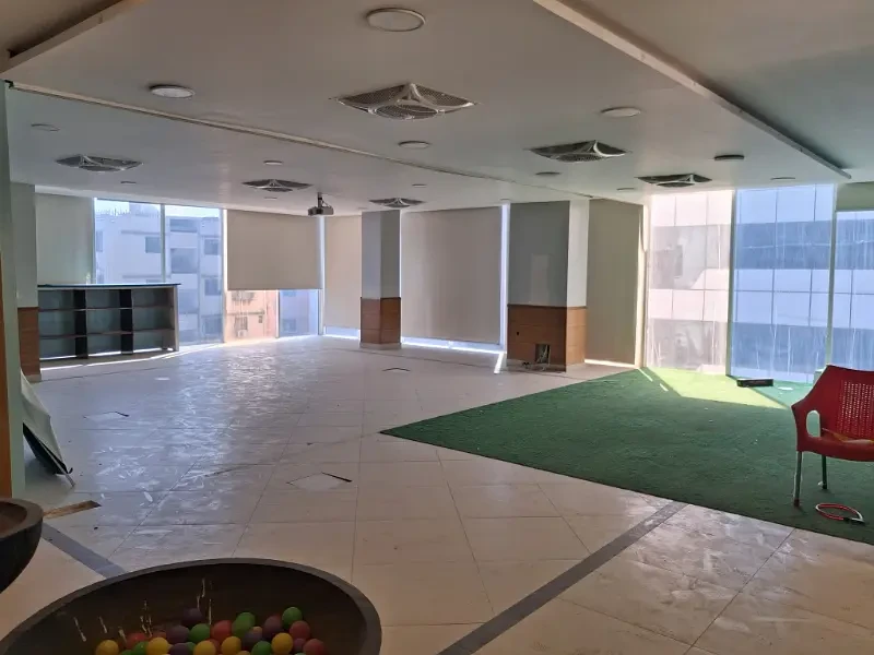 Office space available for rent in DHA Phase 6, Small Shahbaz Commercial, offering approx. 2,000 sq. ft. in a prime 3-side corner building. The office includes built-in chambers, full glass elevation, and lift access with direct main road connectivity.