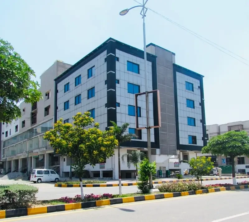 A commercial plaza is available for sale in F-17, Islamabad for Rs 30 Crore. The property spans 14 Marla with a total covered area of 24,000 sq. ft., including semi-ground, ground, and four upper floors, plus large offices on the rooftop.