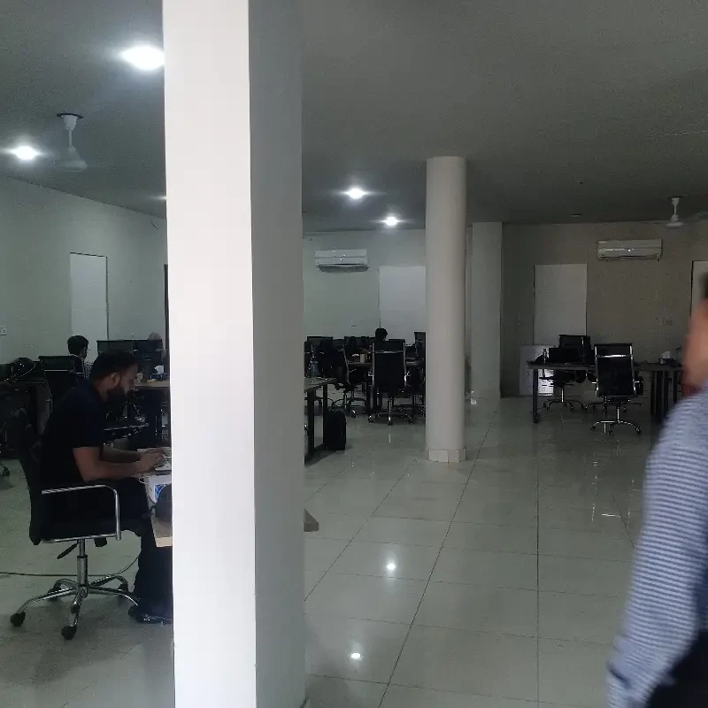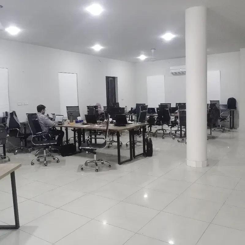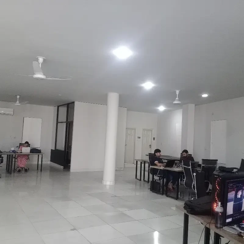 A commercial office is available for rent on the 150 Feet Johar Town Main Boulevard, near Allah Hoo Chowk and Iqra Medical Complex.