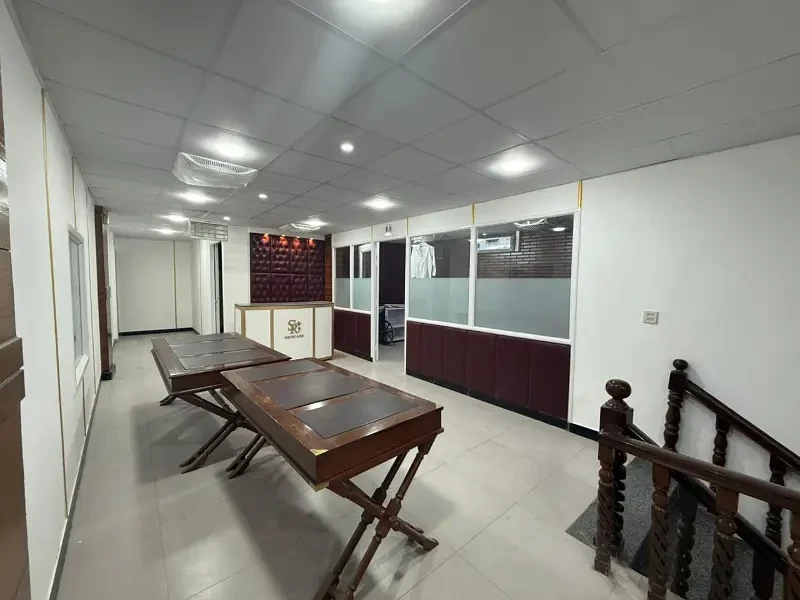 A prime commercial space of up to 2,300 sq. ft. is available for rent in F-6 Markaz, ideal for brands, restaurants, salons, and aesthetic or medical clinics. The property features a hall with rooms, tiled flooring, modern lighting, kitchen, washrooms, brand-new AC installed, and 24/7 security.
