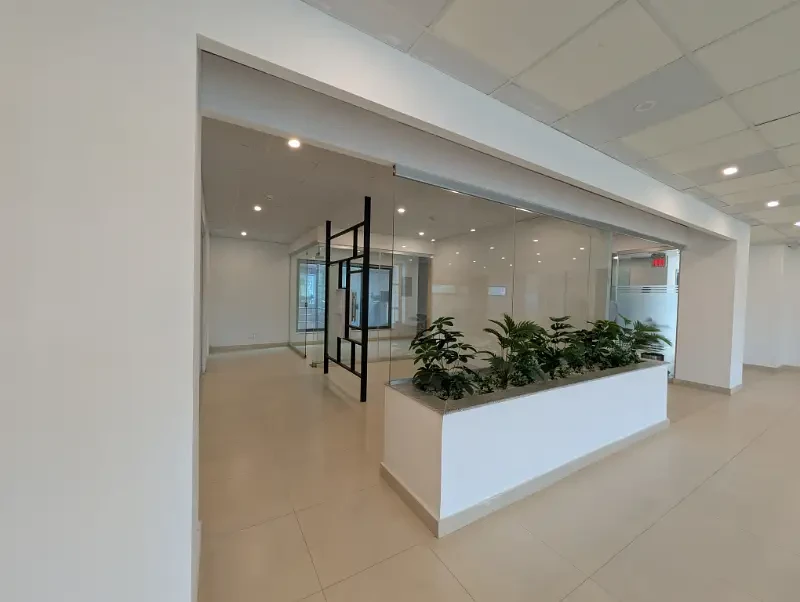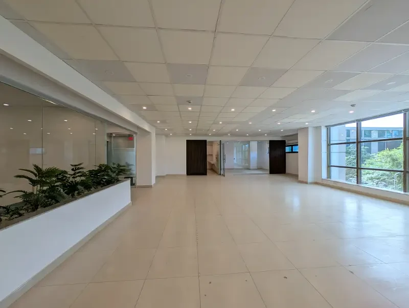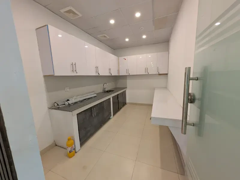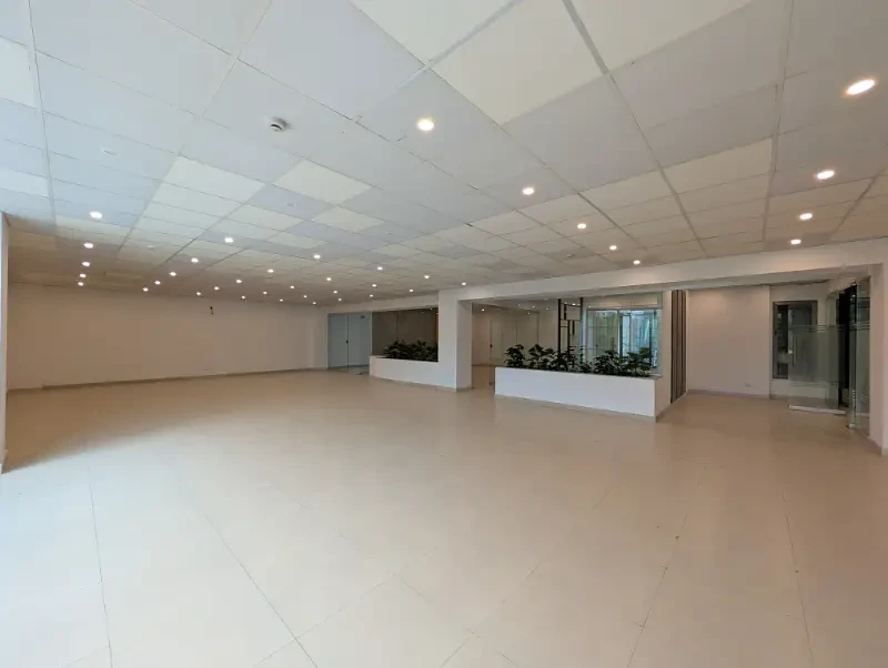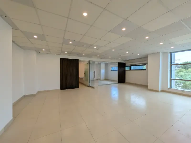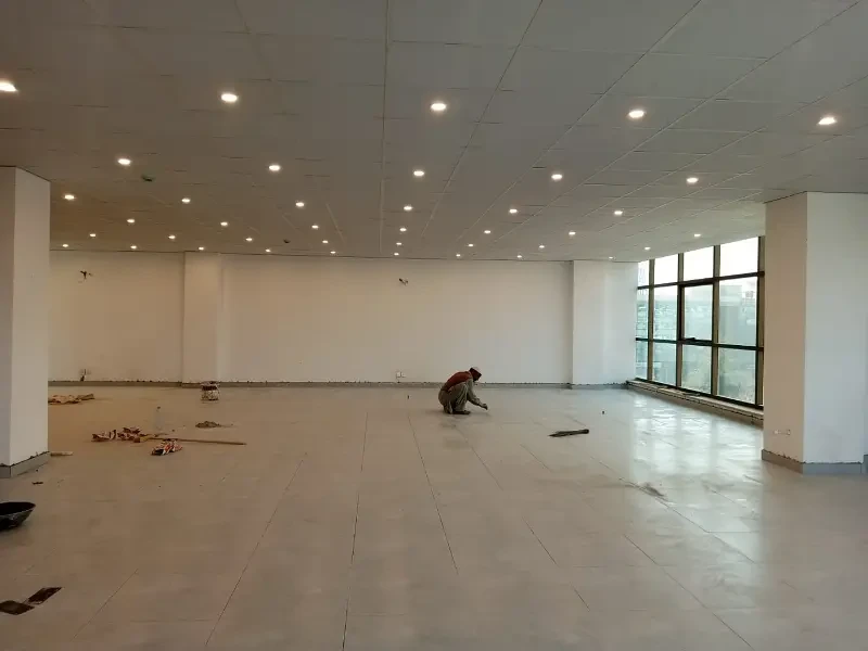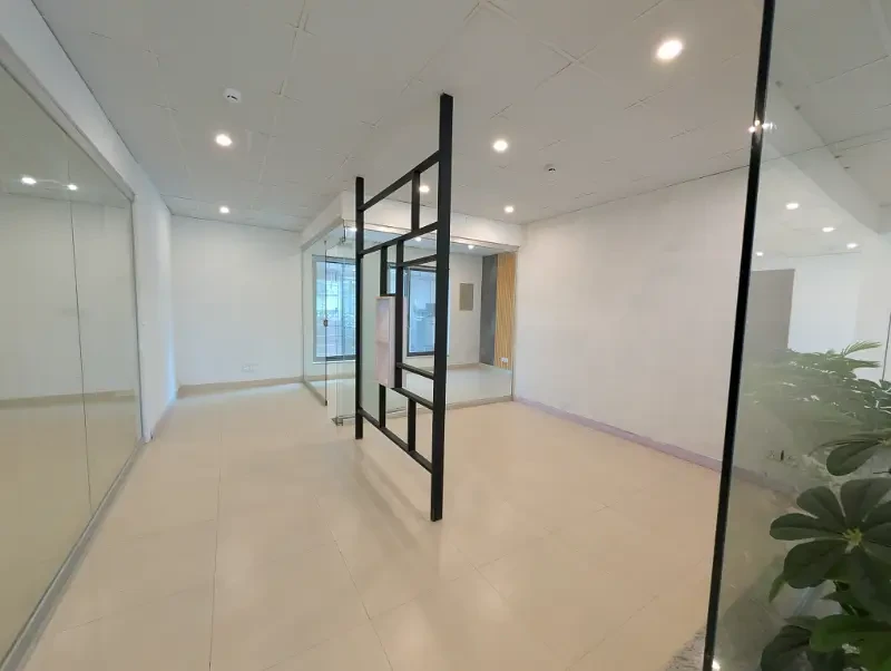 The covered area spans 4,200 square feet, designed as a corporate floor featuring a large open hall complemented by glass-partitioned rooms that allow for flexible office configurations. The space includes a well-equipped kitchen, two to four modern bathrooms, stylish ceiling and lighting fixtures, and elegant tiled flooring, creating a bright and contemporary working atmosphere. A dedicated lift ensures easy accessibility, while the building provides both basement and open parking options for employees and visitors alike.