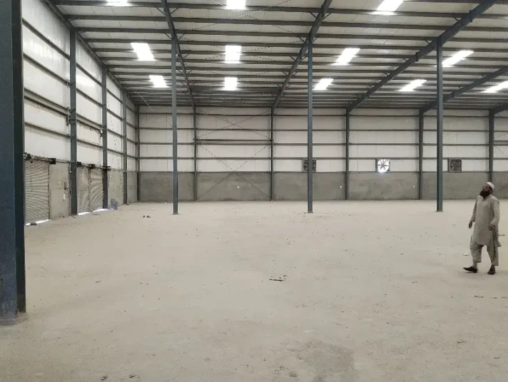 A spacious warehouse is available for rent in Sector 7/A of Korangi Industrial Area at a monthly rent of Rs 52 Lacs. The property is located on the ground floor in an excellent location near Shan Chowrangi, offering easy access for transportation, logistics, and industrial operations.